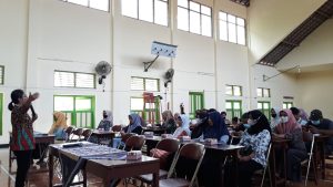 FX Krisniati, sebagai PKB Kapanewon Minggir menyampaikan materi tentang Sosialisasi Modul BKB EMAS (Eliminasi Masalah Anak Stunting) meliputi 8 fungsi keluarga, kesehatan fisik dan mental ibu hamil dan menyusui, pembiasaan PHBS bagi ibu hamil, stimulasi 1000 HPK, peran ayah dan pengasuhan yang tanggap, cepat dan tepat bagi kebutuhan anak, selain itu penyebab masalah anak gagal dalam tumbuh kembang yang dikarenakan kekurangan gizi, penyakit kronis, paparan asap rokok serta masalah sanitasi yang menjadi masalah di kelurahan sendangmulyo sebagai lokus stunting. Setelah itu dilanjutkan dengan mencoba permainan ular tangga dengan isi permainan sesuai materi yang disampaikan sehingga kader – kader IMP dapat meriview materi yang sudah didapatkan sebelumnya.